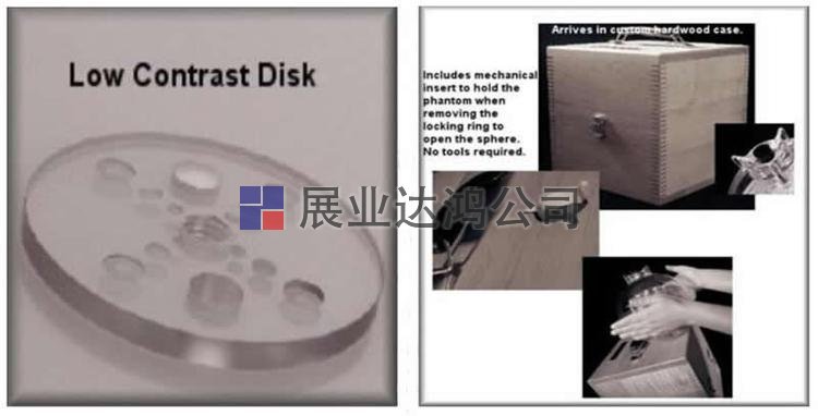 低對比度光盤:低對比度敏感度是用安裝在測試立方體底座上的丙烯酸光盤進行的。光盤中的圓形凹槽通過音量平均產(chǎn)生低對比度圖像。四組三個圓形凹槽的深度分別為0.5mm,0.75mm,1.0mm和2.0mm,直徑分別為4mm,6mm和10mm。